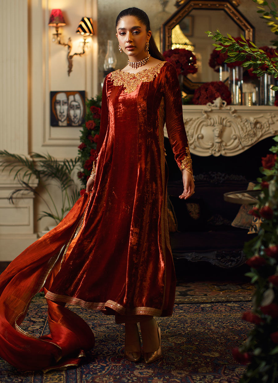 Color: Burnt Orange Fabric: Plush Velvet Work Details: Embellished