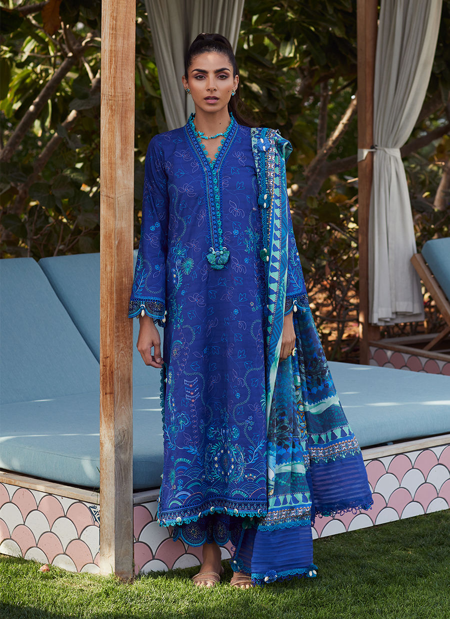 Color: Beryl Deep Blue Fabric: Lawn Work Details: Embroidered
