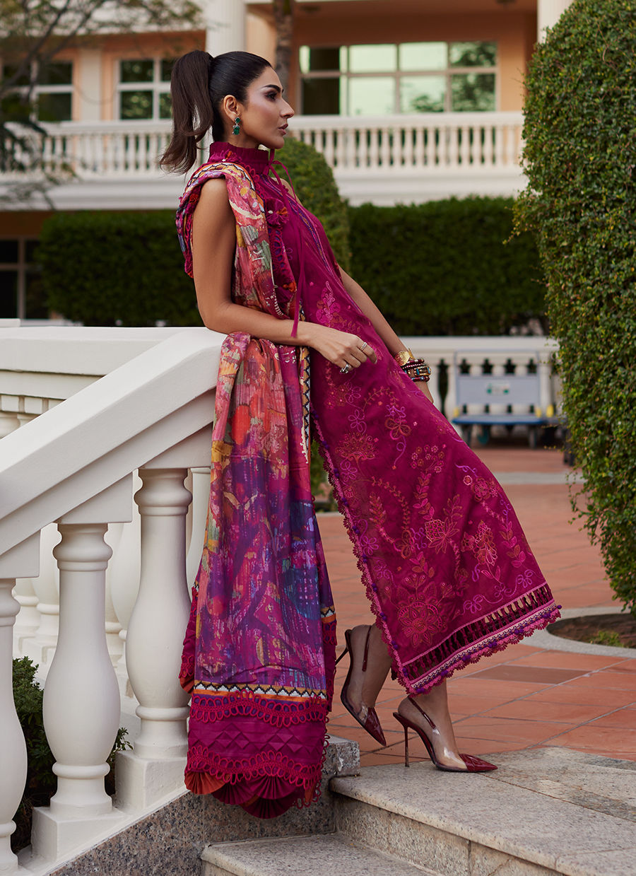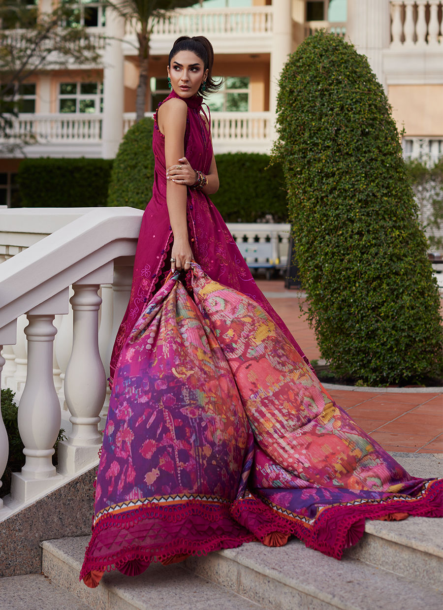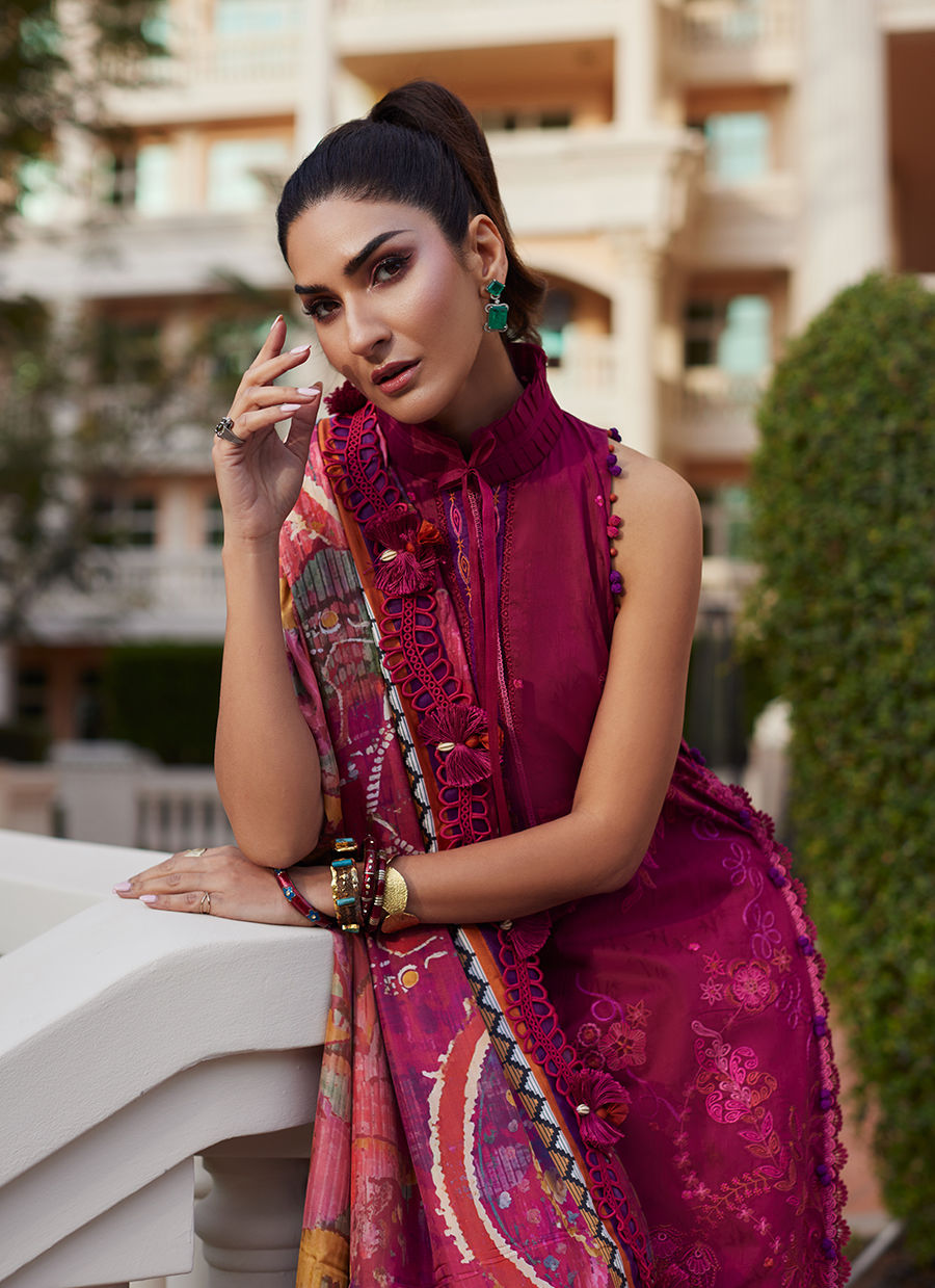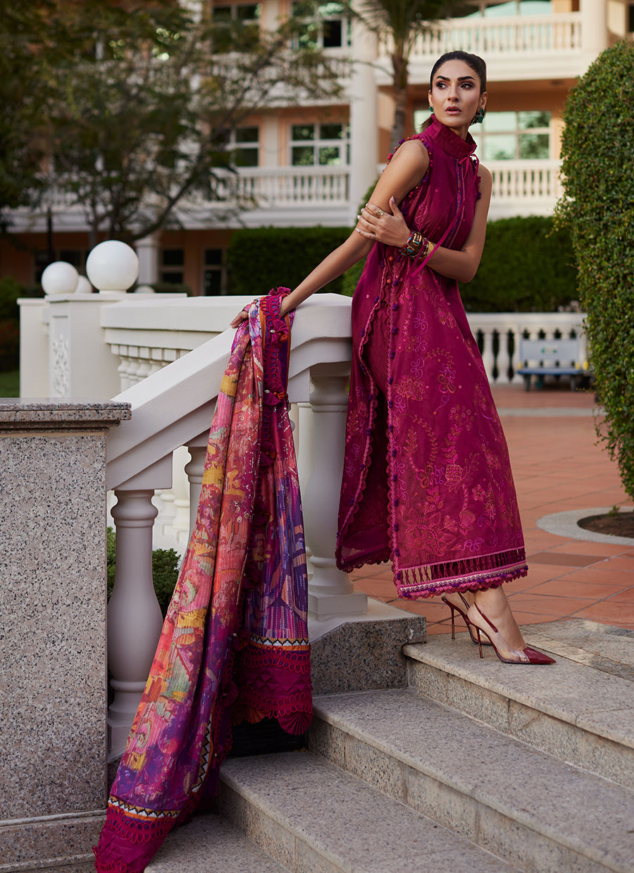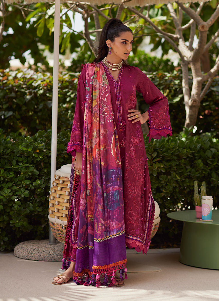 Rita Rust is an intense, burnt orange hue, richly embroidered vibrant, uplifting shades to keep it fresh, yet timelessly glam. The pure medium silk dupatta in ties in with the embroidery and simply uplifts the entire ensemble completely effortlessly. The comfortable, jacquard pants will keep you breezy day or night. Intricately detailed, inspired blooming botanicals, Rita Rust is sure to fill your sun-kissed days with breezy moments, and unforgettable memories.