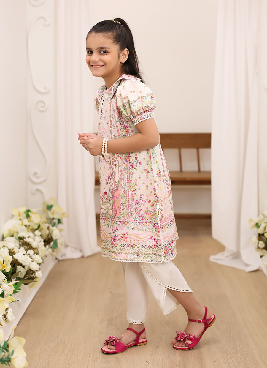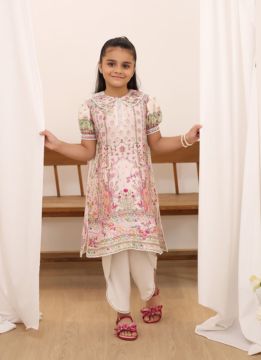 Brimming with signature FTA details, our new prints have the perfect pastel hues to set your heart aflutter!! This sumptuous raw silk kurta for young girls is a stunning blend of elegance and whimsy.