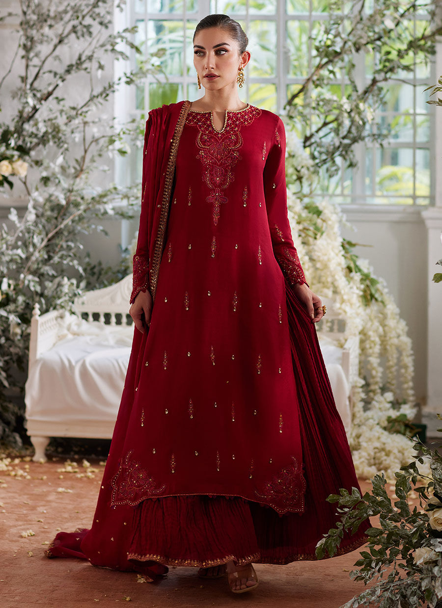 Color: Scarlet Fabric: Pure Raw Silk Work Details: Hand Worked