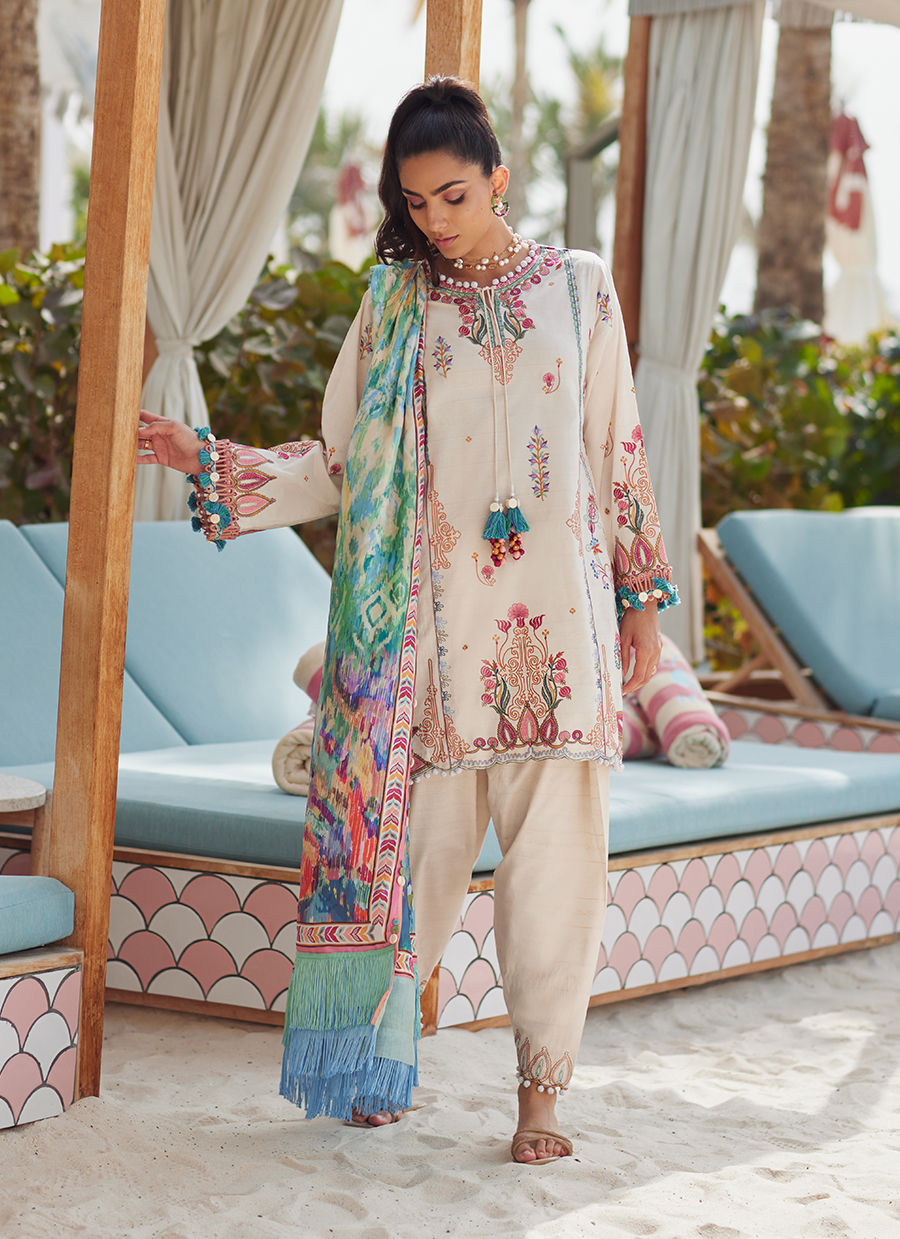 Color: Ivory Fabric: Lawn Work Details: Embroidered
