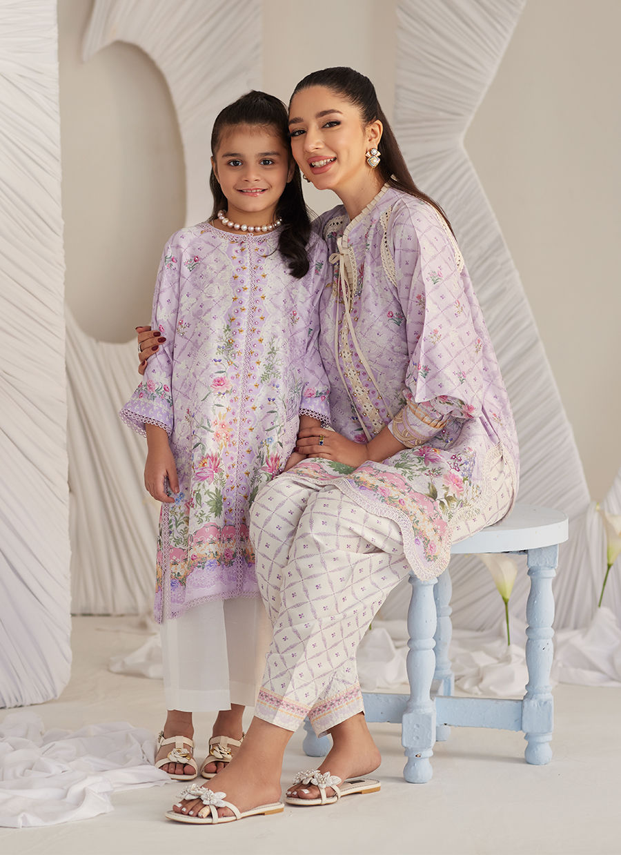 This soft lavender printed raw silk kurta for young girls is a graceful blend of tradition and contemporary style. The delicate lavender fabric features an intricate, subtle print that adds a touch of elegance and charm. The raw silk feels luxurious yet breathable, perfect for comfortable wear during festive occasions or family gatherings. The kurta’s slightly puffed sleeves lend a playful, feminine silhouette, while the relaxed fit offers freedom of movement. With its elegant design and delicate detailing, this kurta is a beautiful choice for a young girl looking to make a statement with both style and comfort.