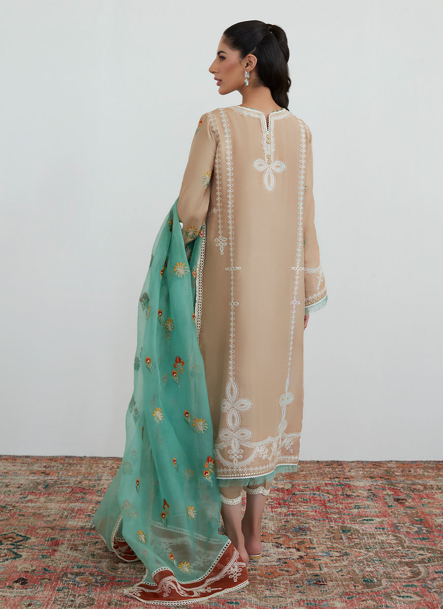 Latte Embroidered Shirt With Organza Dupatta