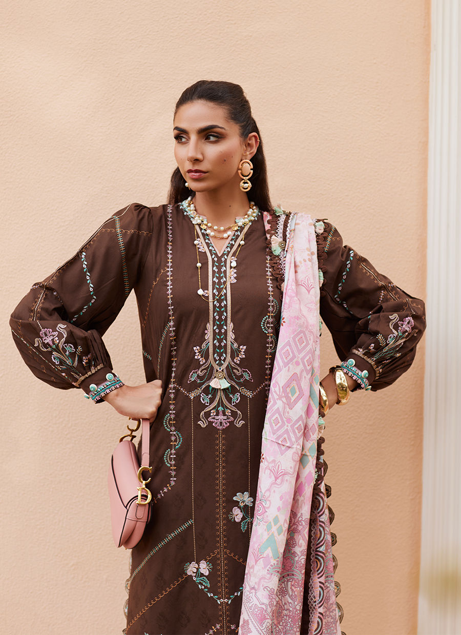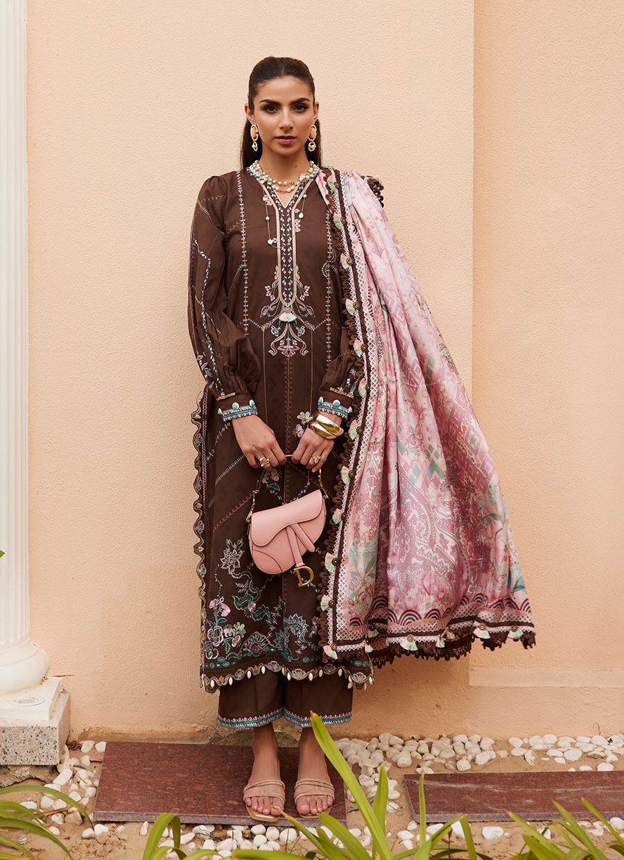 Belle Black is a striking ensemble, the shirt is decorated with impeccably embroidered blooms in enticing blue and lavender hues. The eye-catching embroidery on the sleeves and borders ties in with the stunning pure medium silk dupatta in soothing, refreshing colours ties the whole ensemble together with easy, covetable sophistication. Unexpected details, uncomplicated elegance with the must have Belle Black!!