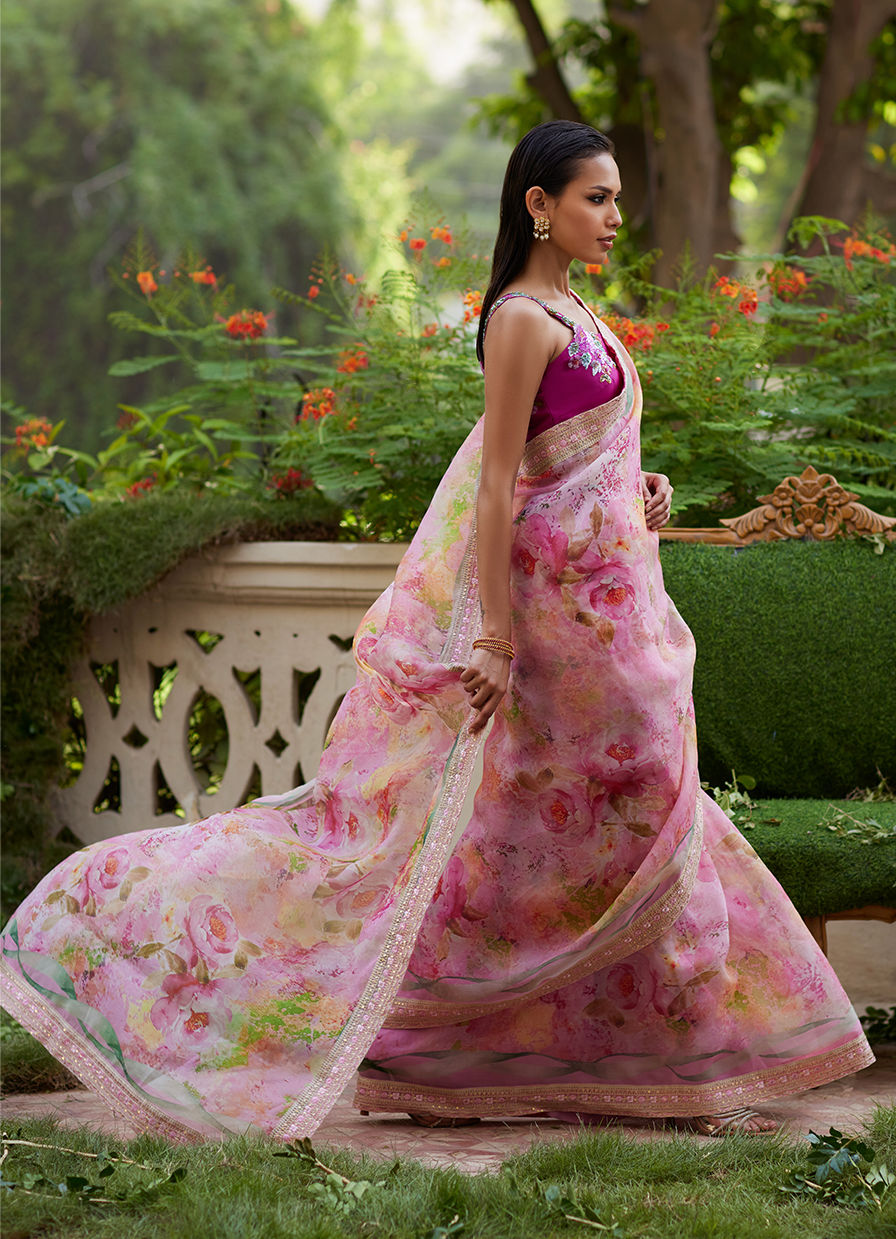 Color: Pink Fabric: Organza Work Details: Printed