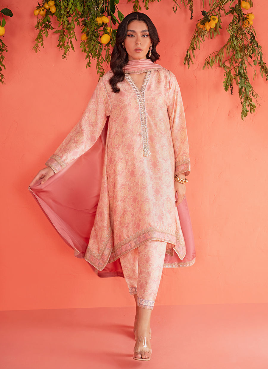 Cut from pure raw silk Mona Blush is inspired by a chunri pattern in shades of soft peach and seashell pink. The print is adorned with a richly hand embroidered neckline and sleeves, with delightfully dreamy pearl accents. The universally flattering, kurta silhouette is perfect for any manner of occasion.
