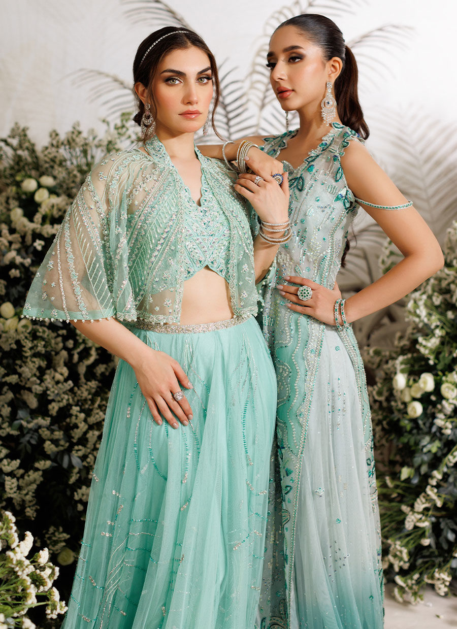 Color: Pale Mint Fabric: Organza Work Details: Hand Embellished