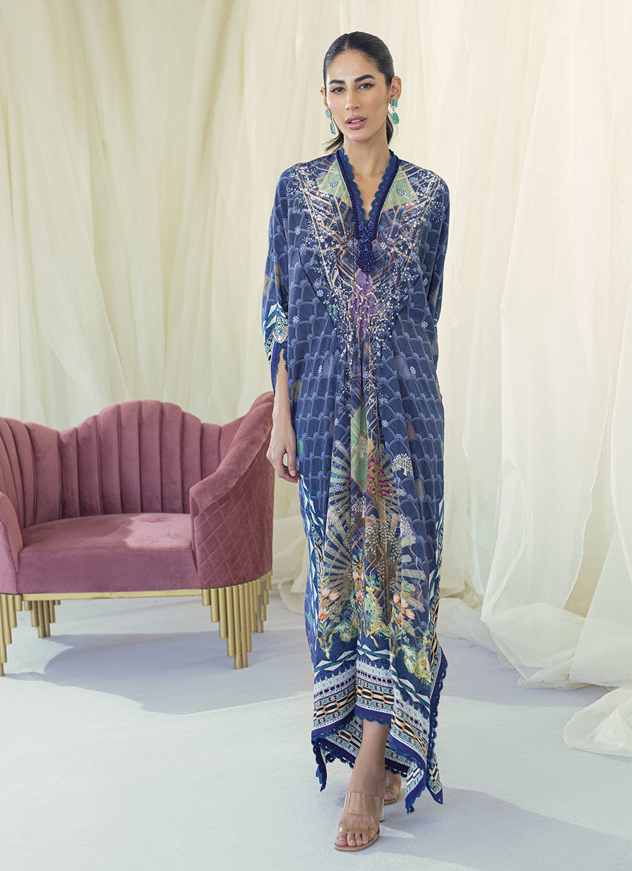 A never seen before print and signature FTA details make this kaftan an indispensable addition to your wardrobe.