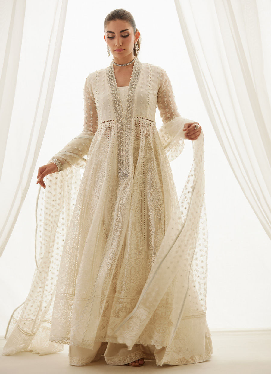 Color: Ivory Fabric: Kalidaar: Embroidered Organza, Lehnga: Pure Raw Silk With Embroidered Border, Dupatta: Embroidered Organza With Pearl And Stone Embellishments