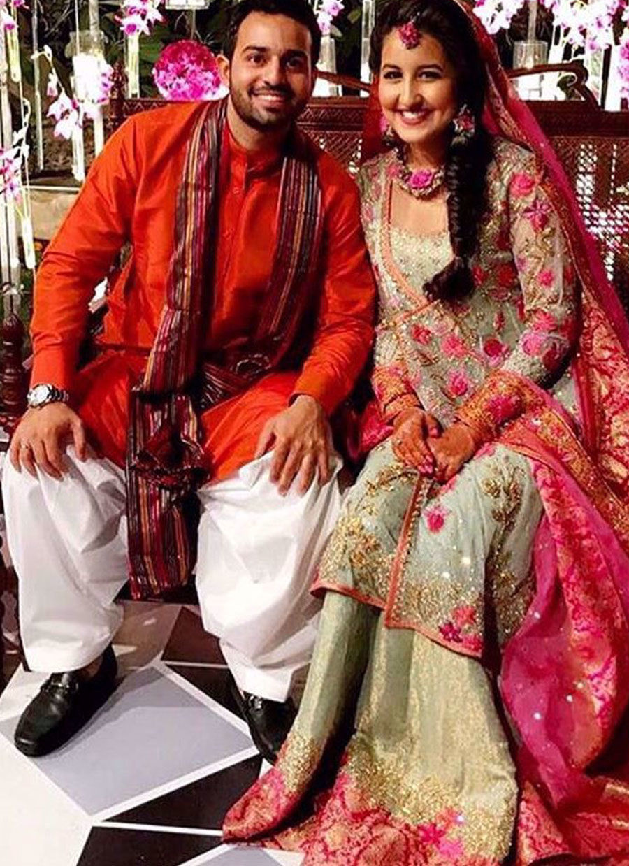 Zara Tariq In A Teal And Magenta Kalidaar Angarkha